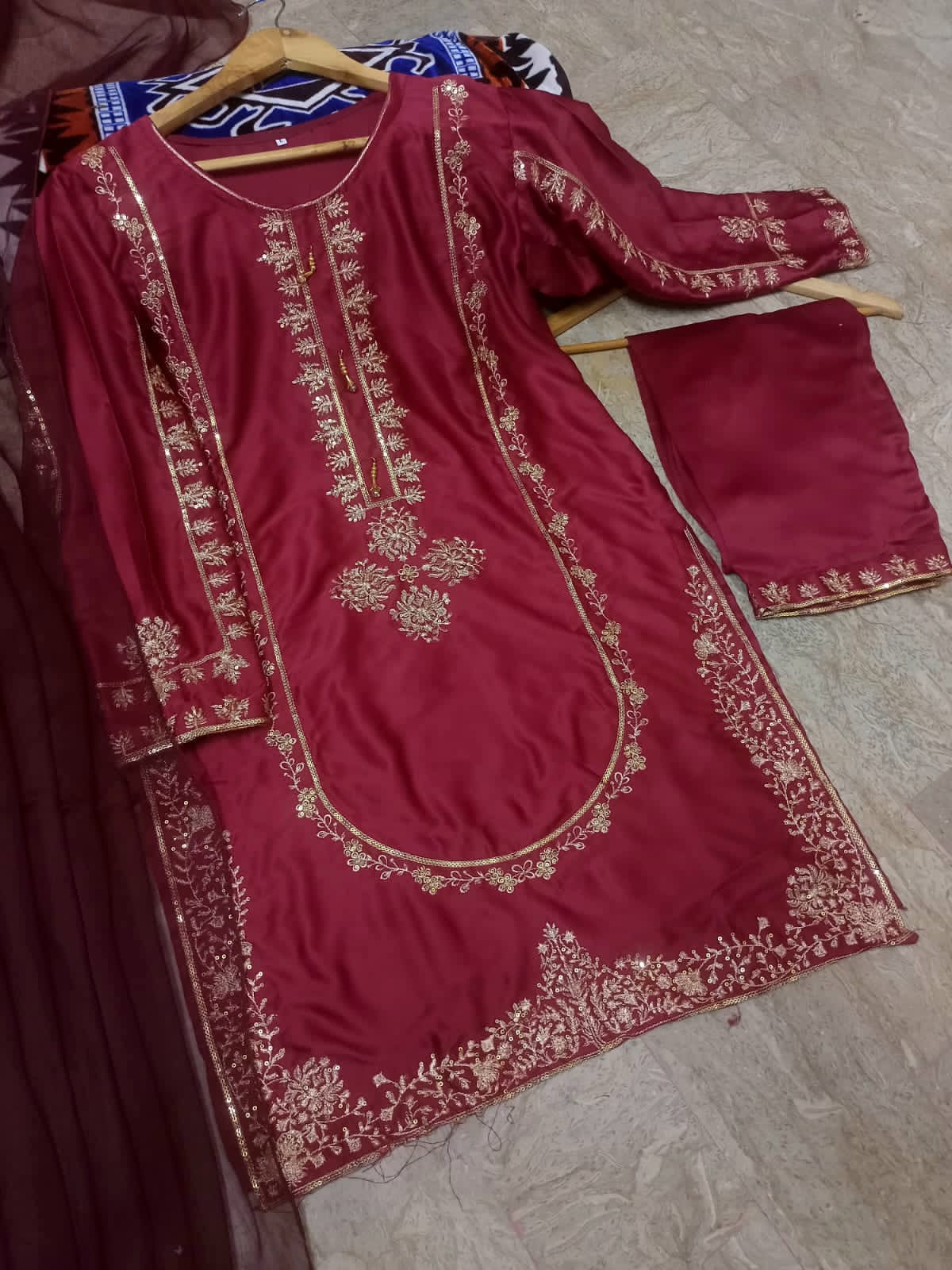 Material: Premium silk for shirt and trouser, with a chiffon dupatta for a lightweight and airy feel.