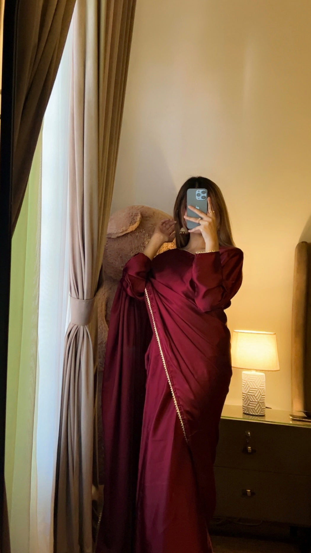 Make a statement with this gorgeous Mehroon Shamoze fabric saree from Zhilaksha!